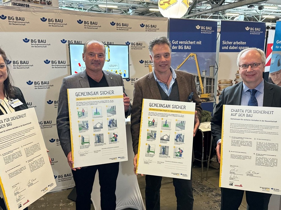 Auf der Fachtagung Abbruch, nach eigenen Angaben Europas größter Fachtagung für Abbruch und Rückbau, wurde am 22. März in Berlin die „Charta für Sicherheit auf dem Bau“ der Berufsgenossenschaft der Bauwirtschaft vom Deutschen Abbruchverband e. V. unterzeichnet. Mit der Unterzeichnung bekenne sich der Verband zu den lebenswichtigen Regeln für Abbrucharbeiten und setze damit im Namen seiner Mitgliedsunternehmen ein starkes Signal für den Arbeitsschutz.