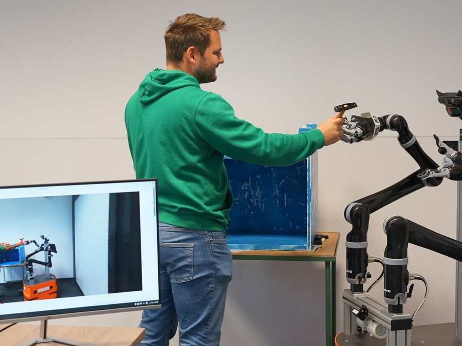 Eine perfekte Zusammenarbeit von Menschen mit Robotern – Fachleute sprechen von Mensch-Roboter-Kollaboration – sei vor allem abseits voll automatisierter Produktionsketten notwendig, dort, wo zur Montage von Kleinserien Roboter den Menschen assistieren, indem sie Teilaufgaben übernehmen. Ohne langwierig angelernt werden zu müssen, sollte der Roboter den Fortschritt der Montage beobachten und bei immer wiederkehrenden Aufgaben selbstständig tätig werden.