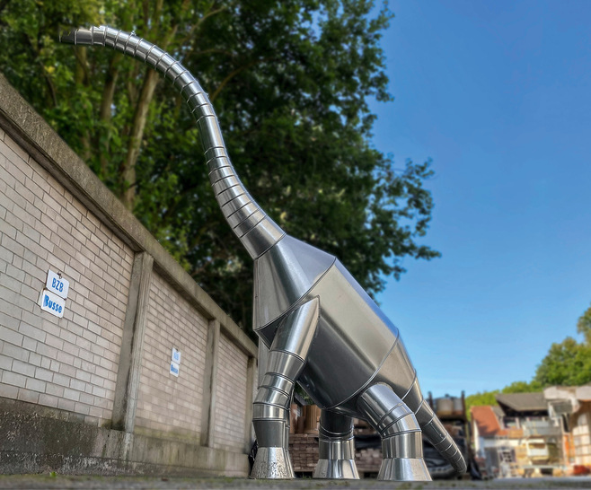 Gemeinsam mit seinen Auszubildenden baute Meister Michael Herding einen drei Meter hohen Dinosaurier