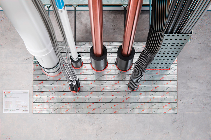Der flexible Brandschutzstein CFS-FS L von Hilti für den baulichen Brandschutz passt sich an Durchdringungen an und reduziert Verschnitt. Ob bei der Erstinstallation oder Nachbelegung – der CFS-FS L überzeugt durch einfache Handhabung und präzise Abdichtung. Der Brandschutzstein besteht aus intumeszierendem Brandschutzmaterial und eignet sich zum Erstellen von Brandabschottungen in großen Öffnungen mit Kabeln, Kabeltrassen, brennbaren und nicht brennbaren Rohren. Der weiche und anpassungsfähige Brandschutzstein ist einen Meter lang und 20 Zentimeter breit. Er lässt sich beim Auffüllen von Brandschutzschotts in jede Richtung verbiegen und geht anschließend in seine Ursprungsform zurück. Durch die Flexibilität passt sich das Material an Durchdringungen an, wodurch es leicht zu verarbeiten ist. Der Anwender muss für Leitungen kein Material herausschneiden, sondern kann es bis zum Medium (Kabel, Rohr oder Träger) anstoßen lassen. Dies führt zu einer einheitlichen Abdichtung. Lücken werden mit dem Hilti Filler aufgefüllt.