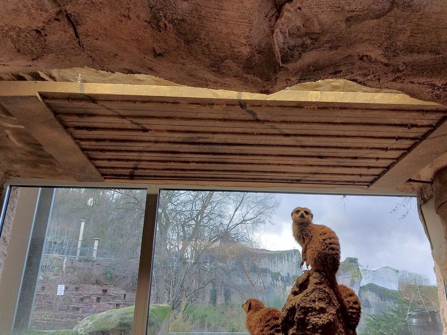 Die Installation an der Decke des Geheges übernahm die Bauer GmbH für Heizung, Sanitär und Klimatechnik aus Baden-Baden. Die farbliche Gestaltung in Tarnfarbe passend zum Umfeld führten die Zoomitarbeiter selbst aus. Daher falle das Wärme spendende Element überhaupt nicht auf.