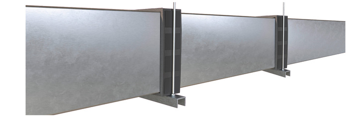 Eine praxisgerechte Lösung bietet der dama-tec Flächenträger FT S3, der als isolierende Zwischenlage zwischen Kanalaufhängung und Unterkonstruktion eingesetzt wird. Er verhindert den direkten Kontakt zwischen metallischen Bauteilen und reduziert dadurch den Wärmefluss.